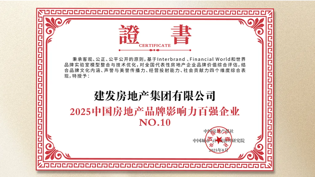 建發(fā)房地產(chǎn)集團品牌及產(chǎn)品獲行業(yè)認(rèn)可